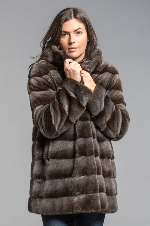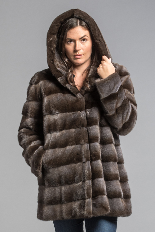 Charcoal Brown Horizontal Mink 3/4 Coat